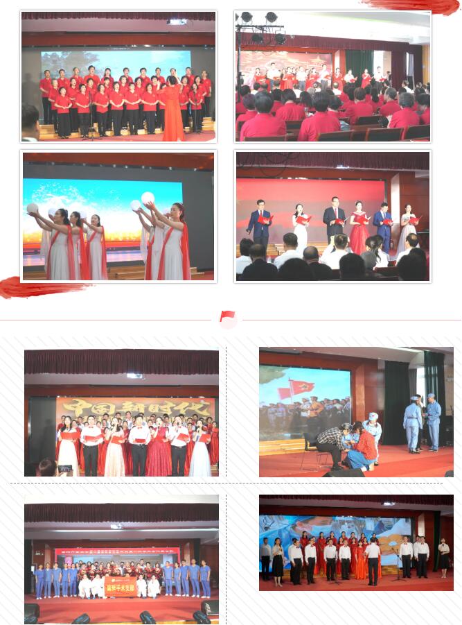诗歌朗诵《江山如此多娇》、舞蹈《灯火里的中国》、大合唱《映山红》、情景剧《十一书·宣誓书》等24个节目把南阳医专一附院人对美好生活的热爱之情表现得淋漓尽致。