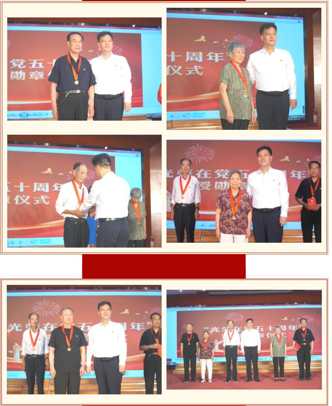 在建党百年演出之际,医院秉承“百年初心,薪火相承”,邀请一附院的老党员出席演出,党委书记赵付生为有50年党龄的中共党员代表颁发光荣在党50年纪念章,回顾了我院从建院之初至今的光辉历程。