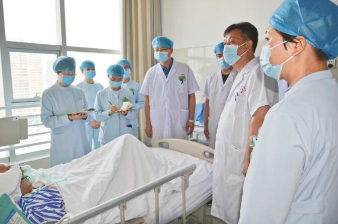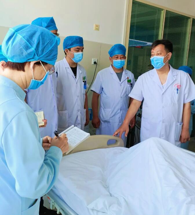晨会之后赵书记带领大家一起深入病房,对危重患者进行床旁交接班,又一次强调了危重患者的治疗和医疗安全问题。