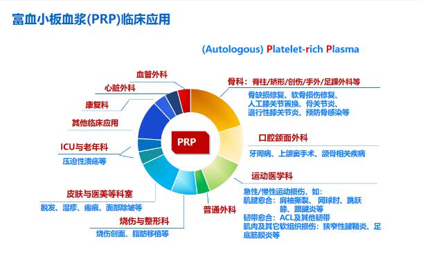 2、具有自源性,不会出现免疫排斥反应,没有异体移植传播疾病风险; 3、含高浓度多种生长因子,具备最佳协同效应(避免单一因子不能良好诱导创面愈合); 4、PRP凝胶具有极好粘附性,使用时可较好的黏附在创面上而不流失,避免损失,保证局部较高的生长因子浓度; 5、因含有较多的白细胞和单核细胞,可起到防止感染作用; 6、采集患者自体PRP均使用一次性全密闭灭菌管路避免采集制备时的细菌污染,且采集时间仅需20分钟内。 血液成分分离机相对于传统的手工试管离心等制备方法有显著的优势。 PRP治疗膝关节骨性关节炎作用机制 促进软骨基质合成 提高滑膜组织中血小板衍化生长因子和血管内皮生长因子的免疫组化表达,从而有益于软骨基质生成; 促进软骨细胞增殖和分化 促进软骨细胞增殖、分化,对软骨修复和重建产生积极作用; 刺激内源性HA生成 可通过刺激内源性HA生成起到一定的抗炎和促进组织修复作用。 PRP注射与透明质酸钠相比有更强更持久的止痛、减轻症状、恢复关节功能的效果