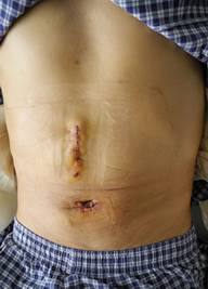 传统结肠造瘘手术切口 腹腔镜结肠造瘘手术切口