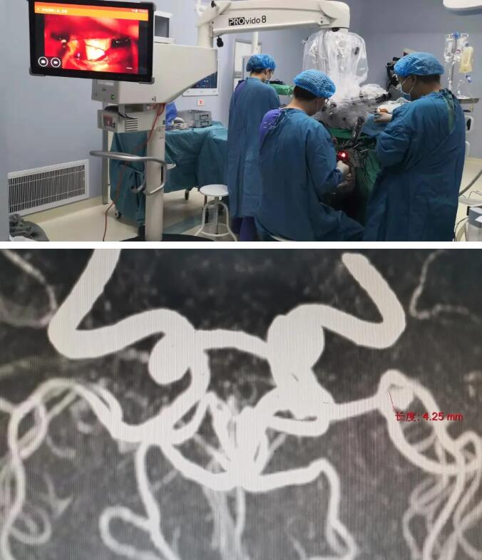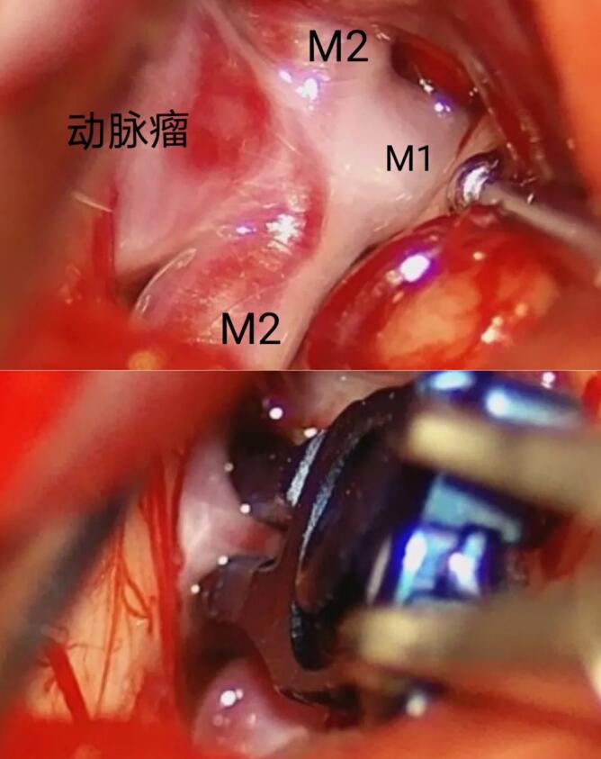 崔群建博士团队完成患者左侧大脑中动脉瘤夹闭。