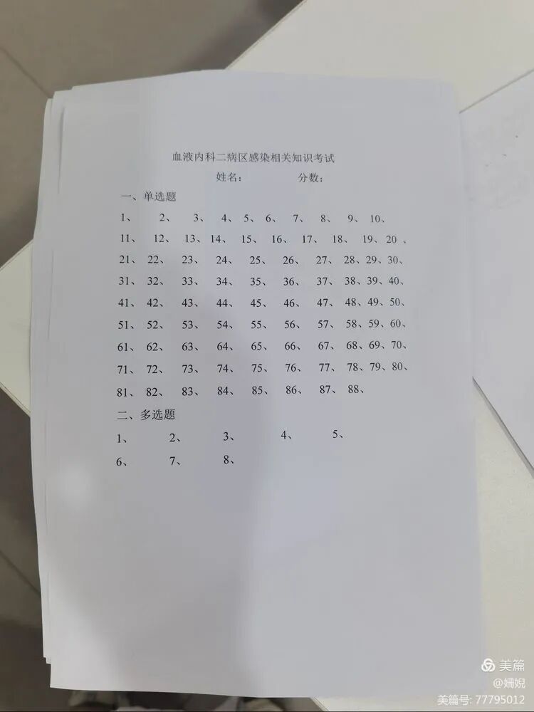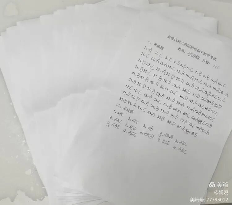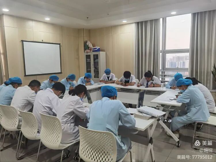 血液内科二病区全体医务人员于2021年9月14日下午在科示教室进行医院感染相关知识闭卷考试!党惠兵主任亲自出题及监考。