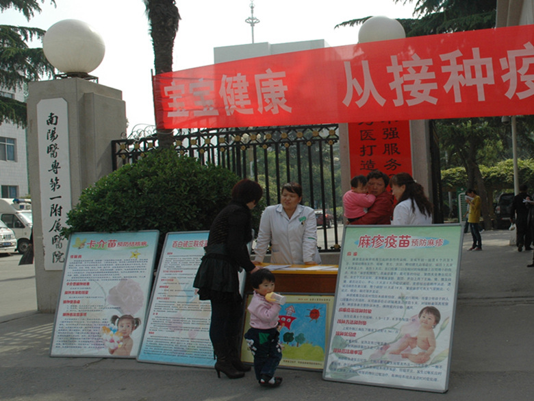 "宝宝健康,从接种疫苗开始"是今年4月25日第28个全国儿童预防接种宣传日宣传主题。医院防保科在南门口开展全国儿童免疫预防接种现场宣传活动。