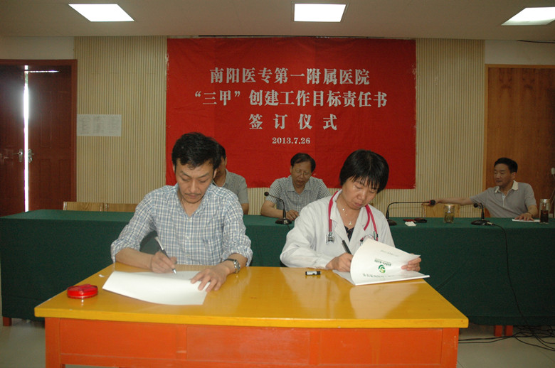 随后各目标责任科室责任人与“三甲”创建工作领导小组组长王立义院长一一签订了《“三甲”创建工作目标责任书》,目标责任书的签订标志着我院“三甲”创建工作进入了真枪实弹的落实整改阶段,在全院再次掀起了“三甲”创建工作新高潮。