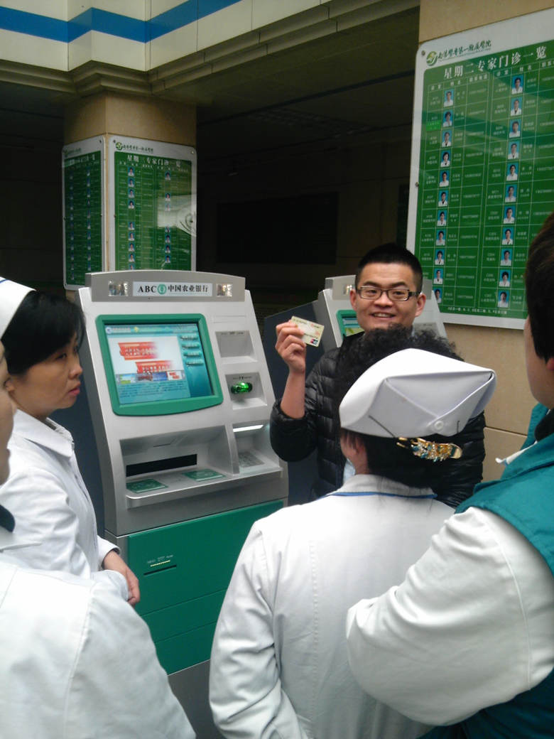 日前,我院与市卫生局、中国农业银行合作建立的居民健康一卡通信息系统正式上线,15台自助机分别在门诊大厅、医技楼投入使用。持居民健康卡的患者在我院看病可实现挂号、预约、门诊清单查询、打印检验报告等项目的全部自助完成,将明显缩短门诊患者的“三长一短”现象。