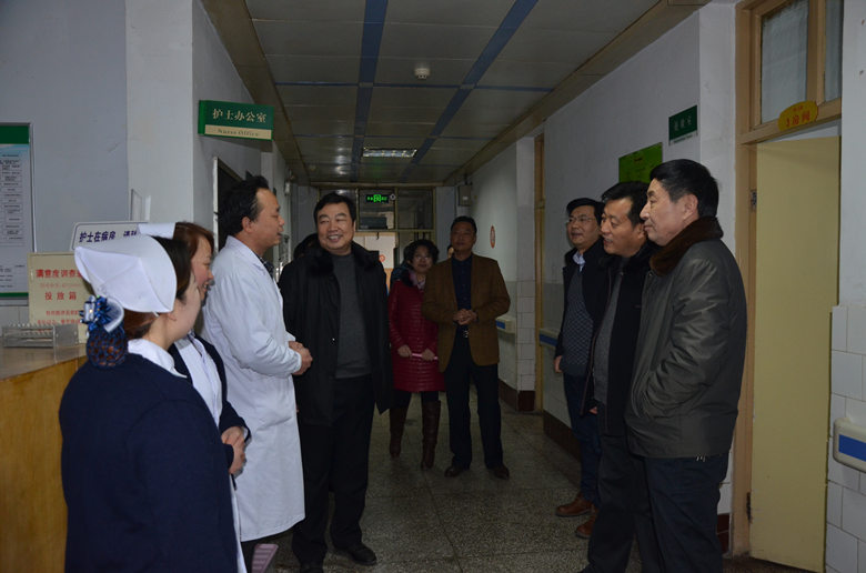 2月8日(农历大年初一)上午,校院领导分别来到医院各个科室亲切慰问节日值班人员和住院患者,并向大家拜年,为大家送上新年的祝福。(图为校院领导深入医院临床一线给春节值班人员及住院患者拜年)