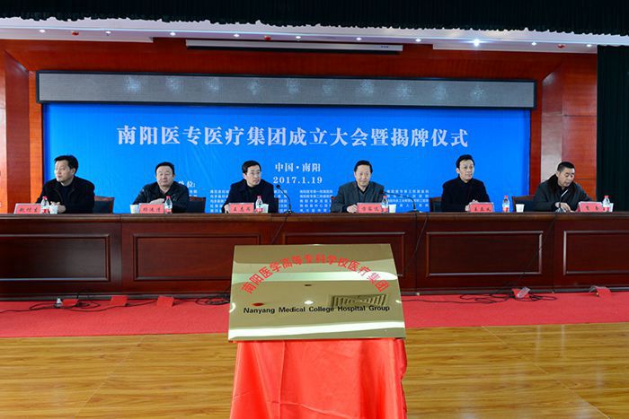 (胡吉席)海纳百川有容乃大,壁立千仞无欲则刚,欲穷千里目更上一层楼!经过近一年的筹备协商试运行,由29家医院组成的医疗集团航母——南阳医专医疗集团正式成立了。1月19日,集团成立仪式在南阳医专一附院全科医师培训楼九楼会议室隆重举行。来自南阳市卫计委的领导、南阳医专的领导、集团29家医院的院长、中层管理人员共500余人参加了集团成立仪式。