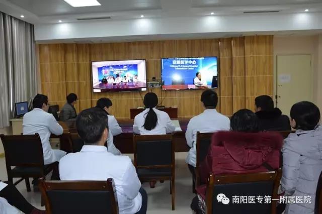 2月8日下午3时30分,我院与中国人民解放军总医院(301医院)联合实施医院首例远程会诊,在我院医技楼6楼远程会诊中心进行。本次会诊由我院神经内科三病区提出,患者王某,男60岁,3月前头晕,缓慢进展右侧肢体无力,右侧面瘫。2月5日入住我院神经内科三病区住院治疗。核磁共振检查显示患者脑干部位占位,性质不明。做增强检查后仍不能确定性质。为此我院神经内科三病区邀请中国人民解放军总医院(301医院)全国知名神经内科专家于生元教授进行远程会诊。
