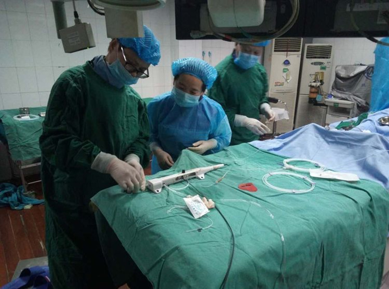 这名60多岁的男性患者,高血压糖尿病多年,近一段时间患者被冠心病、心绞痛折磨的痛不欲生,患者到该院心血管内科三病区求医,经冠状动脉造影检查,结果显示患者前降支近中段中重度狭窄并钙化,如果不进行旋磨患者无法顺利支架植入。看着患者痛苦难耐,该科张占海主任立即邀请全院相关科室的专家前来会诊,并将患者的病历通过远程网络传输给北京301医院、郑大一附院等专家进行会诊,醉终确定为患者实施经皮冠脉旋磨术并行支架植入术。这个技术对主治医生心理素质及介入操作的要求高,在南阳医专一附院也是首次实施。为了确保手术顺利进行,该科成立了精干的手术团队,术前与北京、郑州的专家多次进行网上手术会诊。制定了周密稳妥的手术方案。当天下午,手术在医院介入室进行,由心脏介入手术经验丰富的张占海主任亲自实施。经过2个多小时的紧张手术,钙化病变经旋磨导管处理后,成功将支架植入患者的冠状动脉内。术中患者心率、血压稳定,术后无心绞痛症状发生,目前正在医院康复治疗。