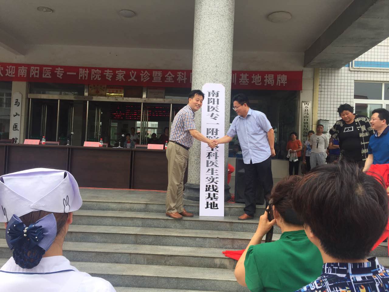 当天上午10时,南阳医专一附院全科医生实践基地揭牌仪式在内乡县马山口镇卫生院举行,南阳医专一附院党委书记赵付生、内乡县卫计委主任王宜蛇共同为南阳医专一附院全科医生实践基地揭牌。随后举行了大型义诊活动。