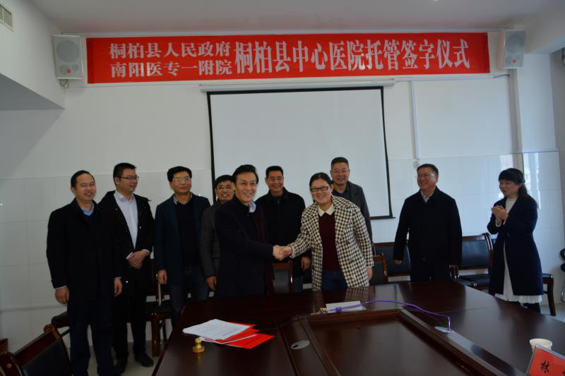 (办公室)11月27日,医技楼六楼会议室,桐柏县副县长王楷楠与我院院长王立义共同在《桐柏县人民政府、南阳医专第一附属医院对桐柏县中心医院委托管理协议书》上签字,标志着我院对桐柏县中心医院的五年全面托管正式开始。