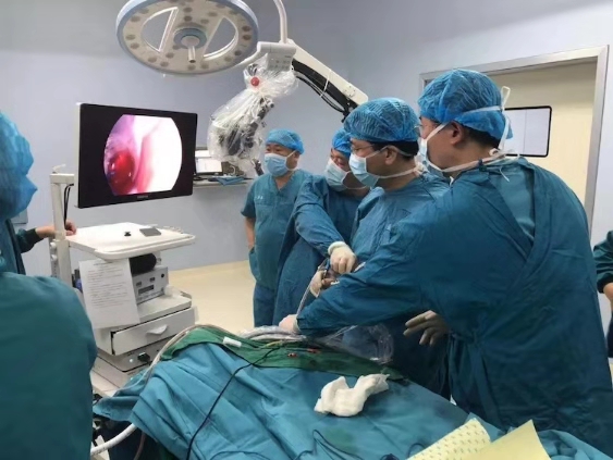 在手术过程中,崔群建博士带领团队双镜联合(神经内镜和显微镜)顺利完成血肿清除及疑似畸形血管团切除术。