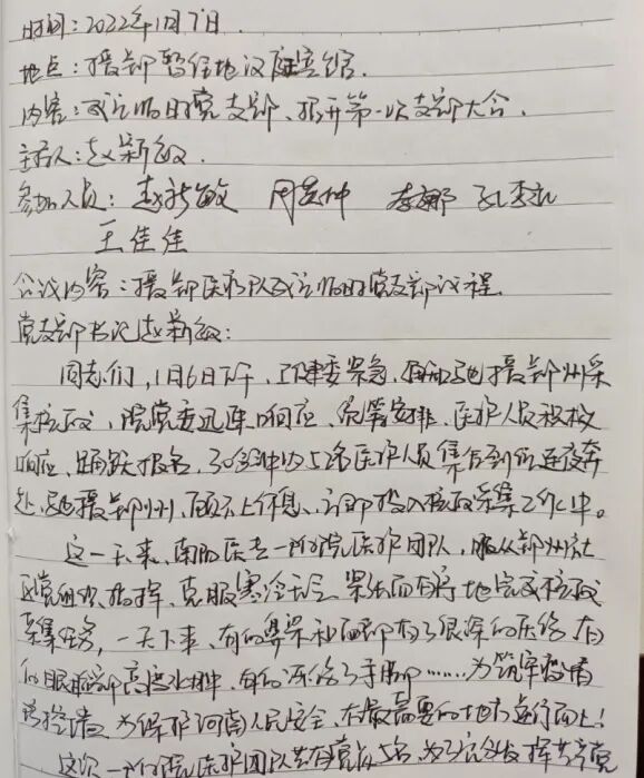自开展疫情阻击战以来,大家纷纷递交请战书,志愿战斗在阻击新型冠状病毒战役第一线,以强烈的责任感和荣誉感捍卫人民的生命健康。2022年1月6日,医院接到市卫健委紧急通知,抽调医务人员支援郑州核酸采集,院领导闻令而行,从全院请战职工中抽调52位精兵强将,成立南阳医专一附院援郑核酸采集疫情防控工作组,严格落实郑州市防控指挥部各项工作安排,确保核酸采集工作有序开展,全力阻击疫情传播,2022年1月7日,按照院党委指示,成立援郑医疗队临时党支部,并任命赵新敏同志为临时党支部书记,组织全体成员重温入党誓词。