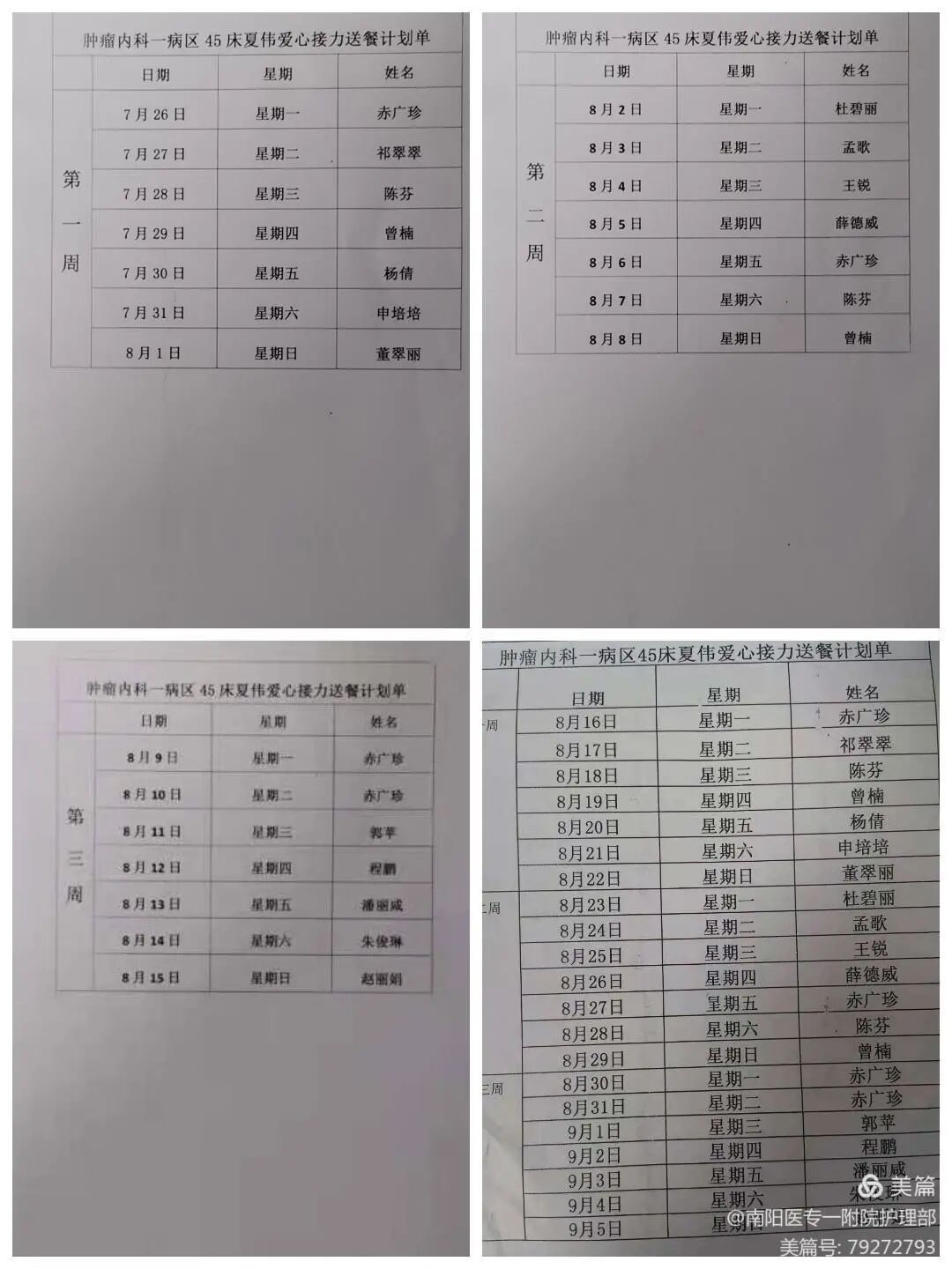 大家争先恐后排队献爱心, 每天姐妹们都想办法带来各种各样的食物,饺子、面条、米饭,几乎没有重样的。年轻的同志买一些平时自己爱吃的饭菜让患者换换口味。患者妈妈感激的拉着我们的手说:“我带着孩子谢谢你们,大家的举动让我心里暖洋洋的。”