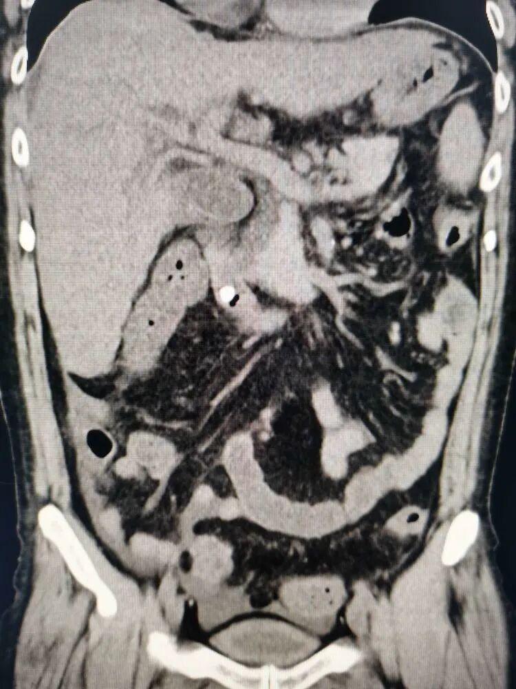 一例胆总管末端结石嵌顿,急性化脓性梗阻性胆管炎,既往合并肝硬化四次消化道大出血,辗转多家省级及市县级医院,疗效不好,反复发作,后慕名来到我院。