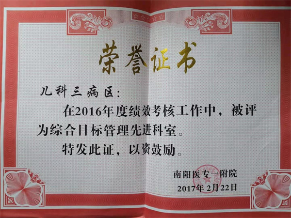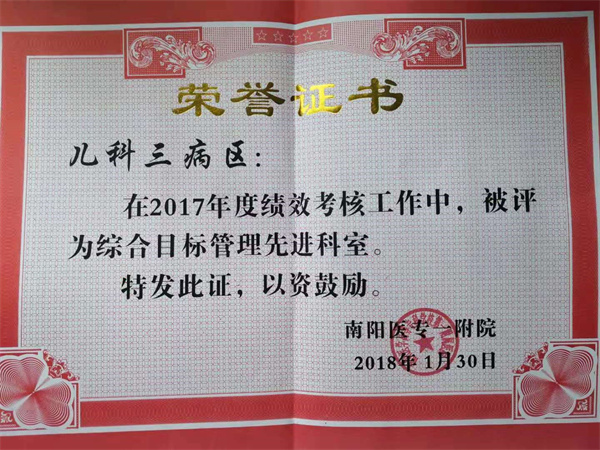 南阳医专第一附属医院儿科三病区位于急诊儿科楼(原内科2号楼)三楼,儿科三病区门诊位于急诊儿科楼一楼儿科第三诊室,成立于2011年11月,由我市著名的儿科专家陈玉才主任医师任病区主任,是南阳市重点学科。现病区拥有床位60余张,是集临床、教学、科研为一体的多功能、多任务学科,擅长治疗小儿肺炎等呼吸系统疾病、消化系统疾病、心肌炎、心律失常、肾脏疾病、脑炎、过敏性紫癜、结缔组织病等疾病,疗效好,疗程短,深受百姓称赞。对于小儿各种疑难病的诊治具有丰富的经验,年收治病人2500余人次,护理操作技术在本市处于领先地位。在广大百姓中享有较高的声誉,医护团队共29人,其中主任医师(教授)一名,副主任医师三名,副主任护师一名,主治医师二人,住院医师3人,医学硕士三人,整体专业水平在全市属领先地位。
