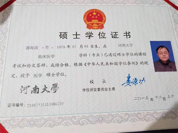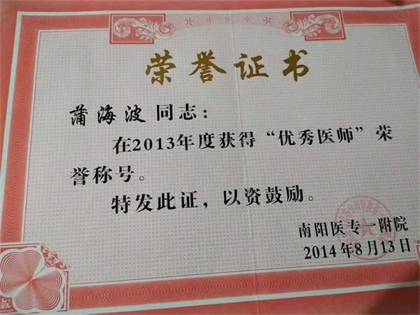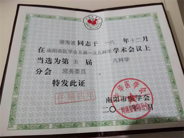 2.蒲海波,男,儿科三病区副主任医师,硕士研究生,从事儿科临床工作17年,现担任南阳医学会儿科分会常务委员,工作上认真负责,业务上努力学习,事业上积极进取,对待病人耐心细心专心,熟练掌握了儿科(包括普通儿科、新生儿科)各个系统疾病的诊治,尤其擅长儿童呼吸系统、神经系统疾病、儿童急救、儿童消化系统疾病的诊治.曾先后到广州市妇女儿童医院、郑州大学一附院等医院学习进修,掌握了儿科领域的新知识、新动向,解决不少疑难杂症,对急危重病人抢救成功率达95%左右。
