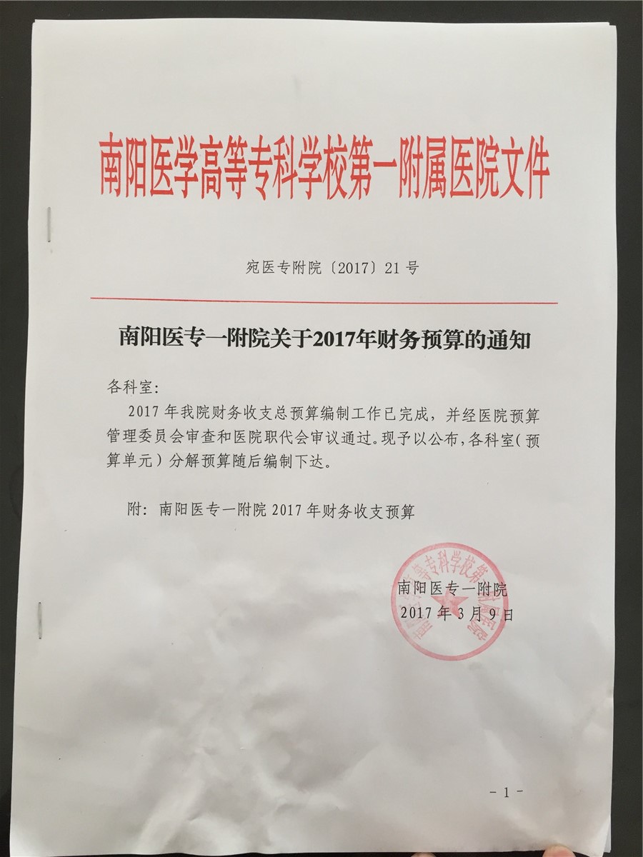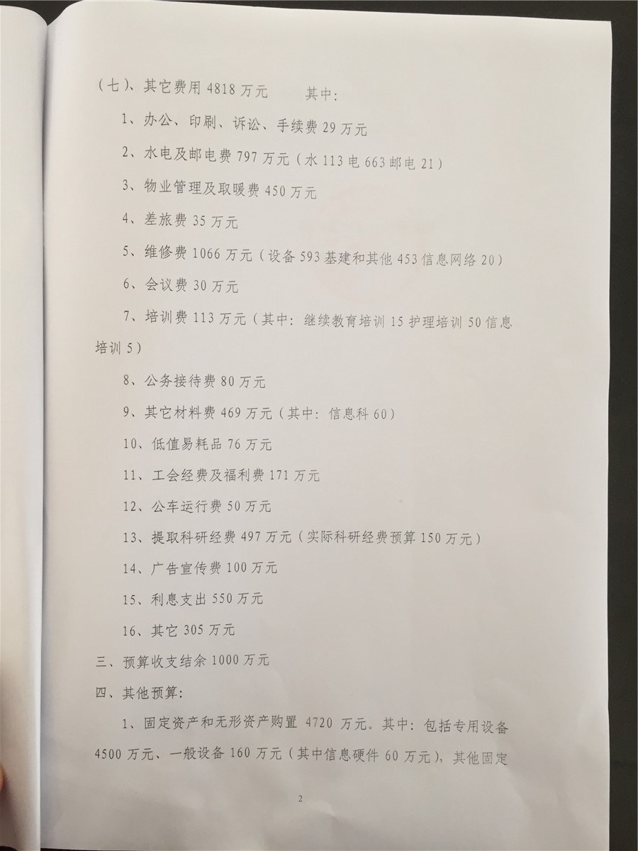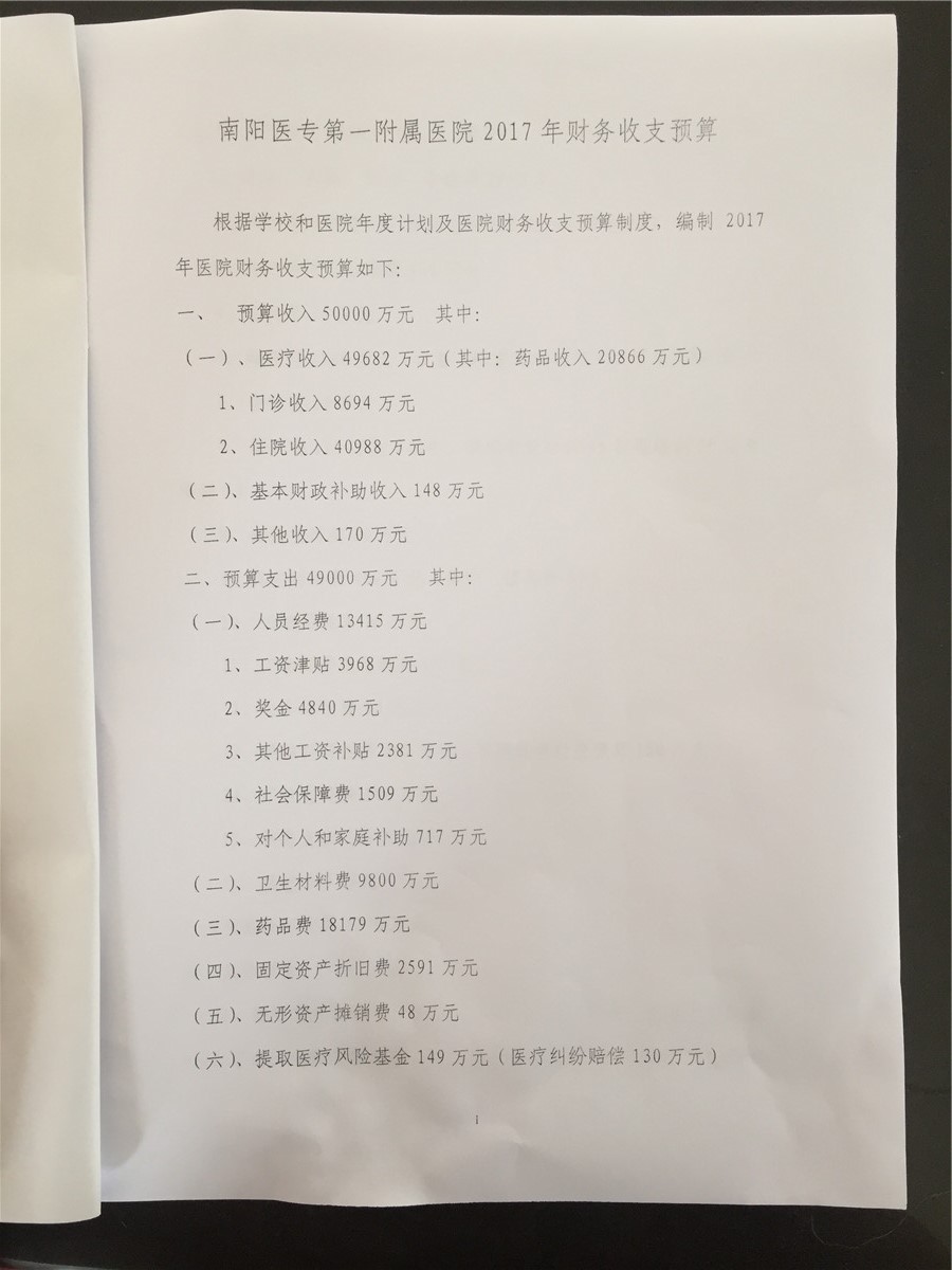 2017年我院财务预算公示