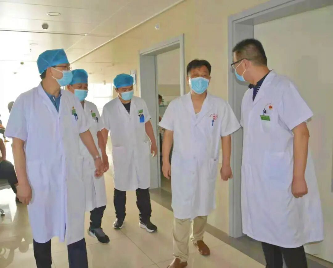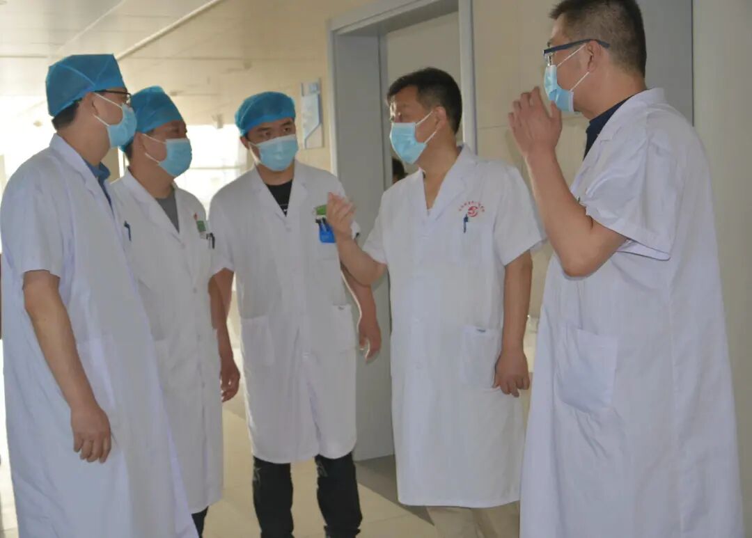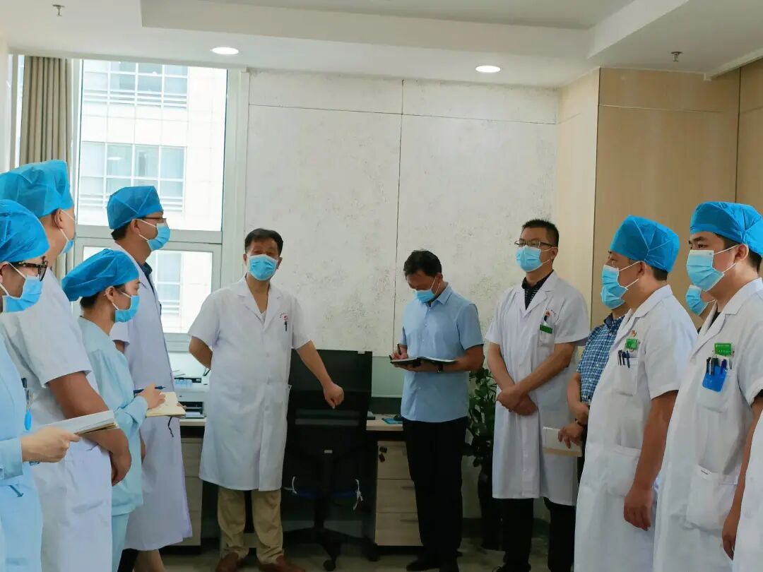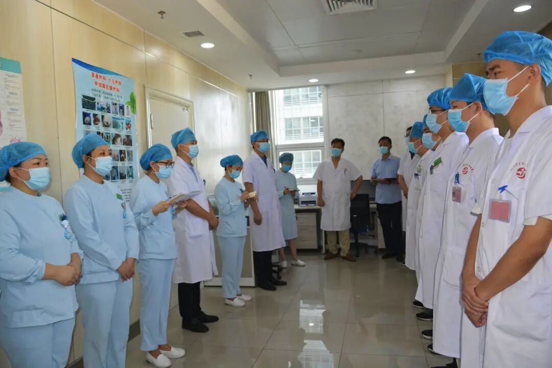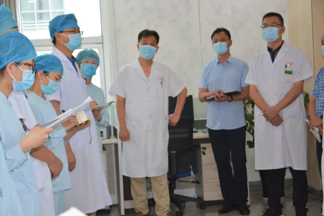齐心协力谋发展 开拓进取谱新篇——南阳医专一附院党委书记赵付生带队参加小儿外科 甲状腺乳腺外科晨会交接班,为了解决医院重业务、轻管理和“被棚架”、“中梗阻”等问题,不断提高临床、医技科室的执行力和工作效率,确保住院患者的安全,2021年7月29日早上8点,南阳医专一附院党委书记赵付生带领党办主任渠建东、医务科科长李昂、护理部主任刘玉惠、人事科科长刘旭杰、医学装备科科长贾栋参加小儿外科 甲状腺乳腺外科晨会交接班。