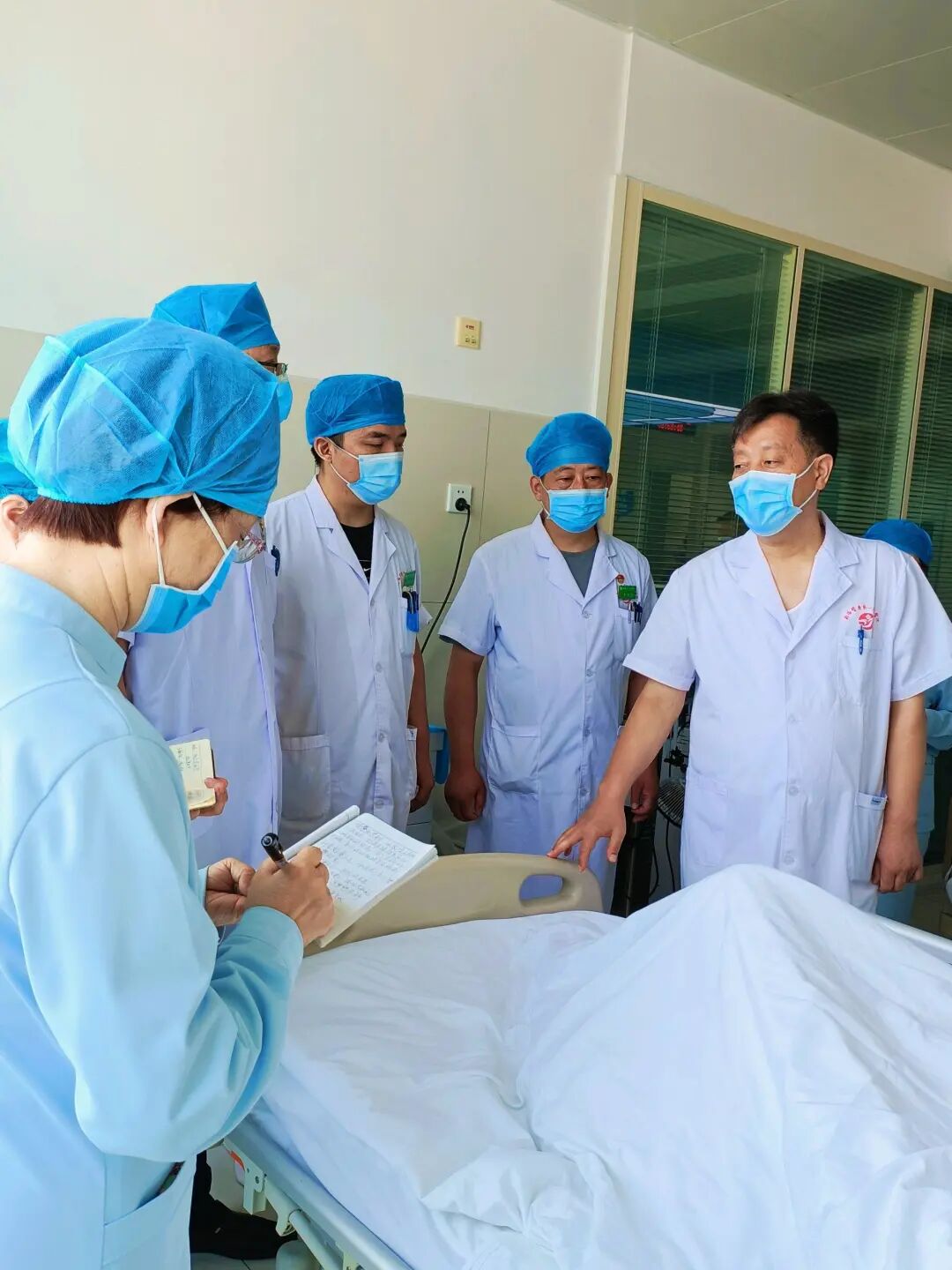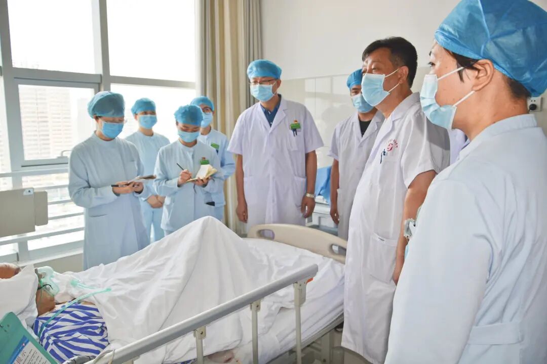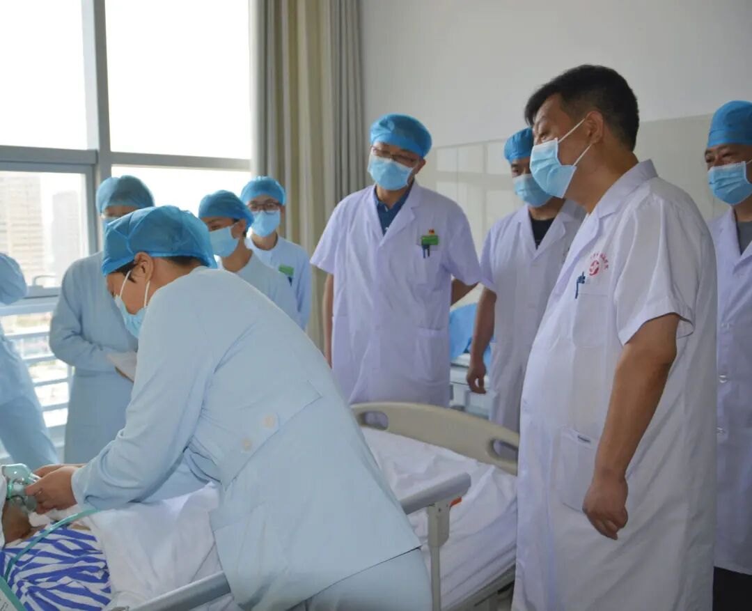 晨会之后赵书记带领大家一起深入病房,对危重患者进行床旁交接班,又一次强调了危重患者的治疗和医疗安全问题。