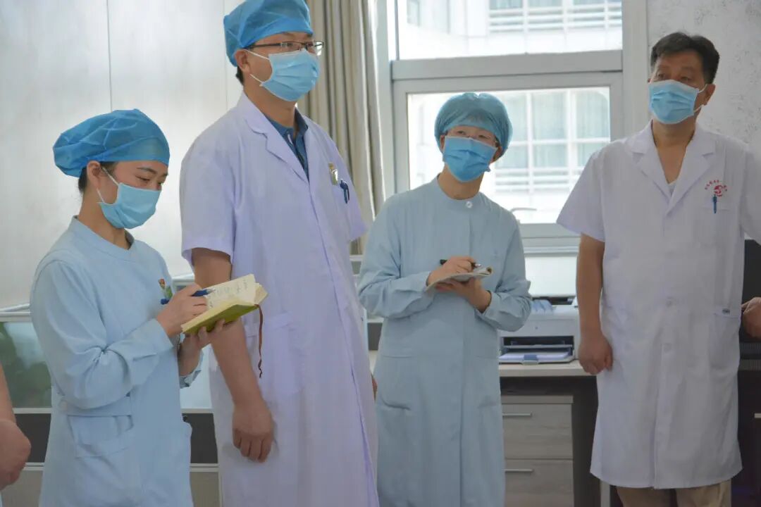 晨会上,首先由夜班护士和值班医生详细地报告病区患者的情况,之后李苗护士长进行总结并扼要地布置当天的工作,传达医院关于防疫工作的新精神,李汉智主任对各位院领导到科室参加晨会交接班表示热烈的欢迎并再次强调了安全、沟通、带教、以及节约等问题。