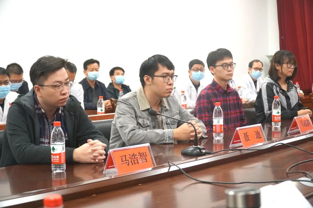医院党委书记赵付生先祝贺同学们进入研究生学习阶段,四位同学研究方向分别是普通外科、普胸外科、消化内科和神经外科,都是由几个院领导作为学科带头人领衔的专业,具备相当强的学科实力,希望大家尽快适应新环境,进入新角色,端正学习态度,树立良好医德医风,提升医学素养!同学们的到来恰逢医院高质量跨越式发展之时,院党委对医院的科研水平和科研能力提出了新要求,大家的到来为我院输入了新鲜血液,对科研也会提供新动力,希望你们怀鸿鹄之志,刻苦钻研,认真实践,多向广大前辈老师们请教,在实践中提升,在学习中进步!在未来的学习生活中大家一定要胸怀梦想,既要有只争朝夕的精神,又要有持之以恒的坚持,成功一定会属于大家的!